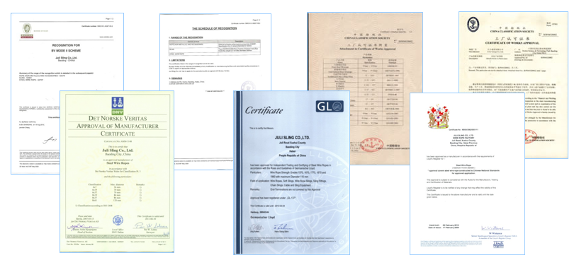 巨力索具致力于纜繩和繩網(wǎng)領(lǐng)域的技術(shù)創(chuàng)新,為客戶提供高品質(zhì)的產(chǎn)品。巨力纜繩產(chǎn)品通過了中國船級(jí)社CCS認(rèn)證、美國船級(jí)社ABS認(rèn)證、英國船級(jí)社LR認(rèn)證、法國船級(jí)社BV認(rèn)證、德國船級(jí)社GL認(rèn)證、挪威船級(jí)社DNV認(rèn)證等一系列權(quán)威認(rèn)證。