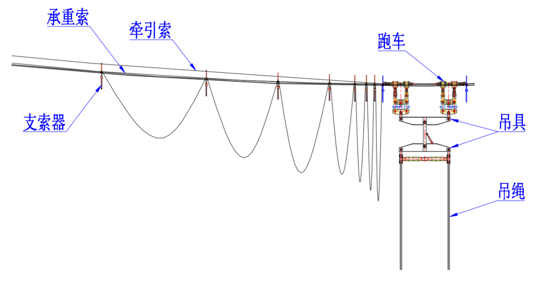 該纜索起重機(jī)系統(tǒng)采用高強(qiáng)度、耐腐蝕特種鋼絲繩及輕量化承重結(jié)構(gòu)設(shè)計(jì),最大起重量達(dá)320噸,可覆蓋全橋施工作業(yè)面,實(shí)現(xiàn)混凝土節(jié)段、鋼構(gòu)件等物資的高精度吊裝。同時(shí),系統(tǒng)搭載智能化遠(yuǎn)程監(jiān)控平臺(tái),實(shí)時(shí)監(jiān)測風(fēng)速、載荷、設(shè)備運(yùn)行狀態(tài),確保復(fù)雜環(huán)境下的施工安全與效率。