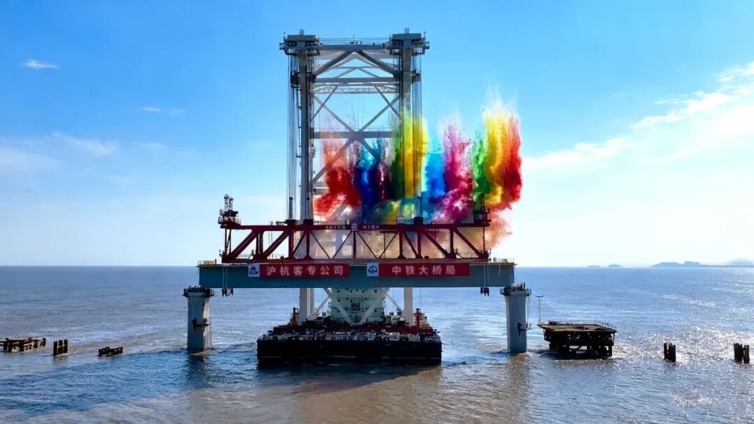 杭州灣跨海鐵路大橋全長約29.2公里,設計時速350公里,是新建南通至寧波高速鐵路的控制性工程。建成后,將成為我國“八縱八橫”高鐵網(wǎng)沿海通道的重要組成部分,對完善區(qū)域路網(wǎng)結構布局,方便沿線人民群眾出行,推進長三角一體化高質(zhì)量發(fā)展具有不可估量的意義。目前,大橋建設正按計劃穩(wěn)步推進,預計2026年底將完成海中引橋主體工程,2027年底建成通車。