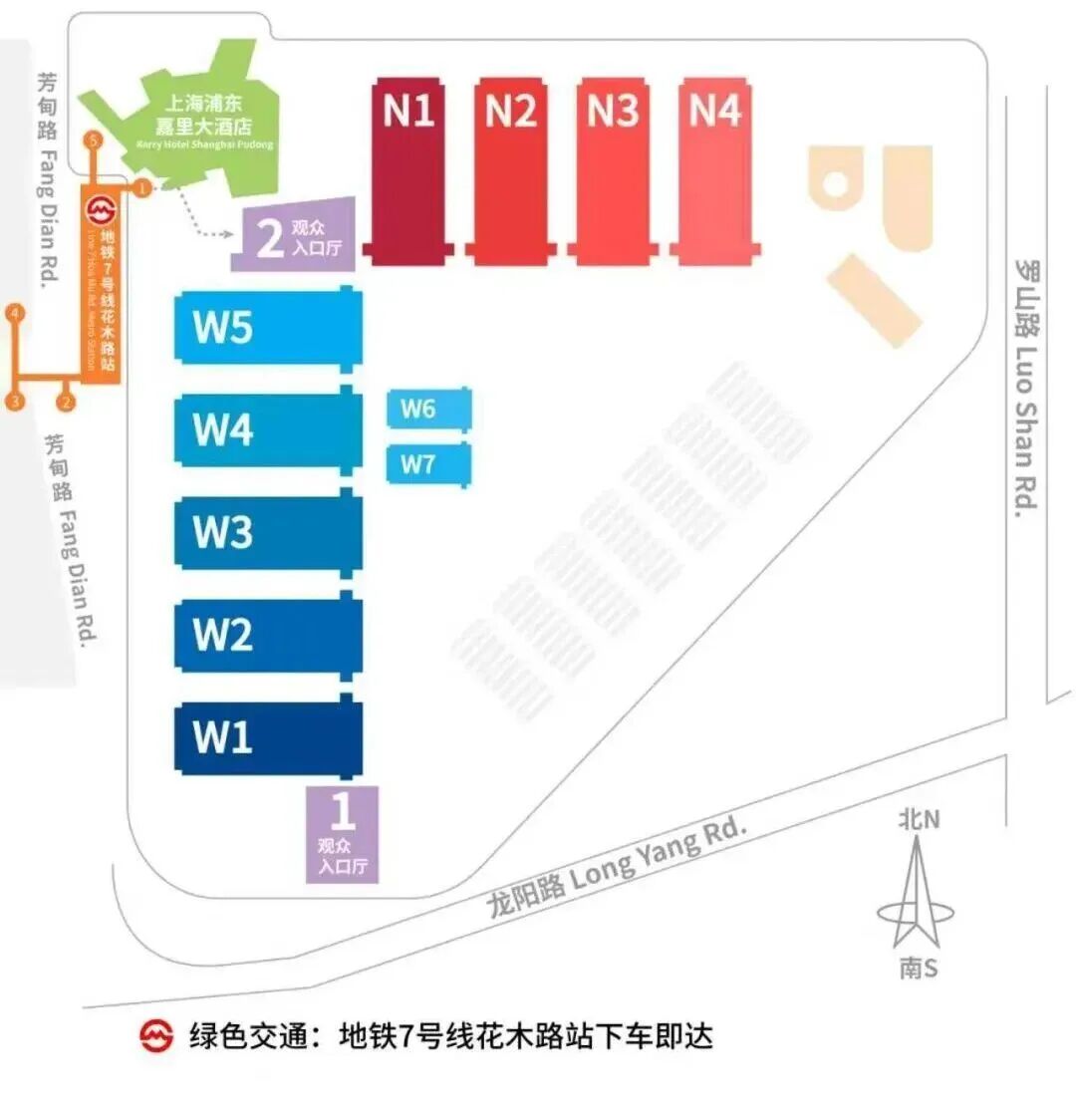 地鐵2號線:乘坐2號線至龍陽路站,從8號或9號出口出站,步行約10-15分鐘可到達展館1號入口廳。