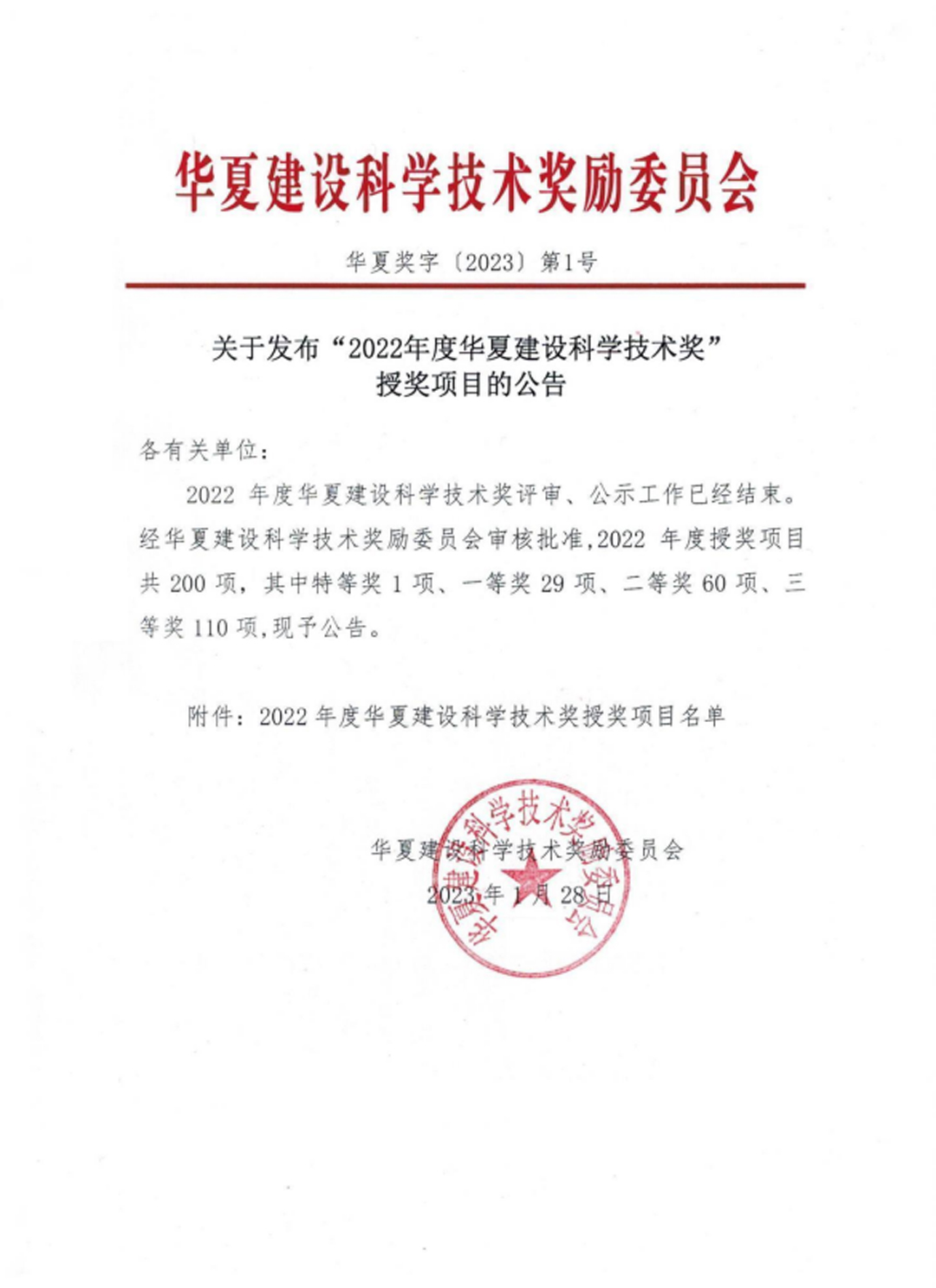 華夏建設科學技術獎,于2002年設立,是建設系統以社會力量辦獎形式設立的建設行業科學技術獎,是我國住房和城鄉建設領域的最高科學技術獎。